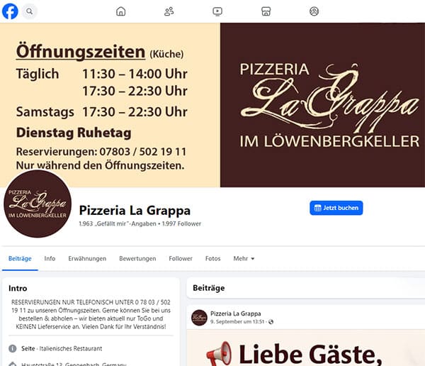 Monday, Thursday, Friday: 2:00 p.m. – 11:00 p.m. (hot meals from 5:30 p.m. – 9:00 p.m.) Saturday, Sunday and public holidays: 11:30 a.m. – 11:00 p.m. (hot meals from 11:30 a.m. – 2:00 p.m. and 5:30 p.m. – 9:00 p.m.) Tuesday and Wednesday: rest day